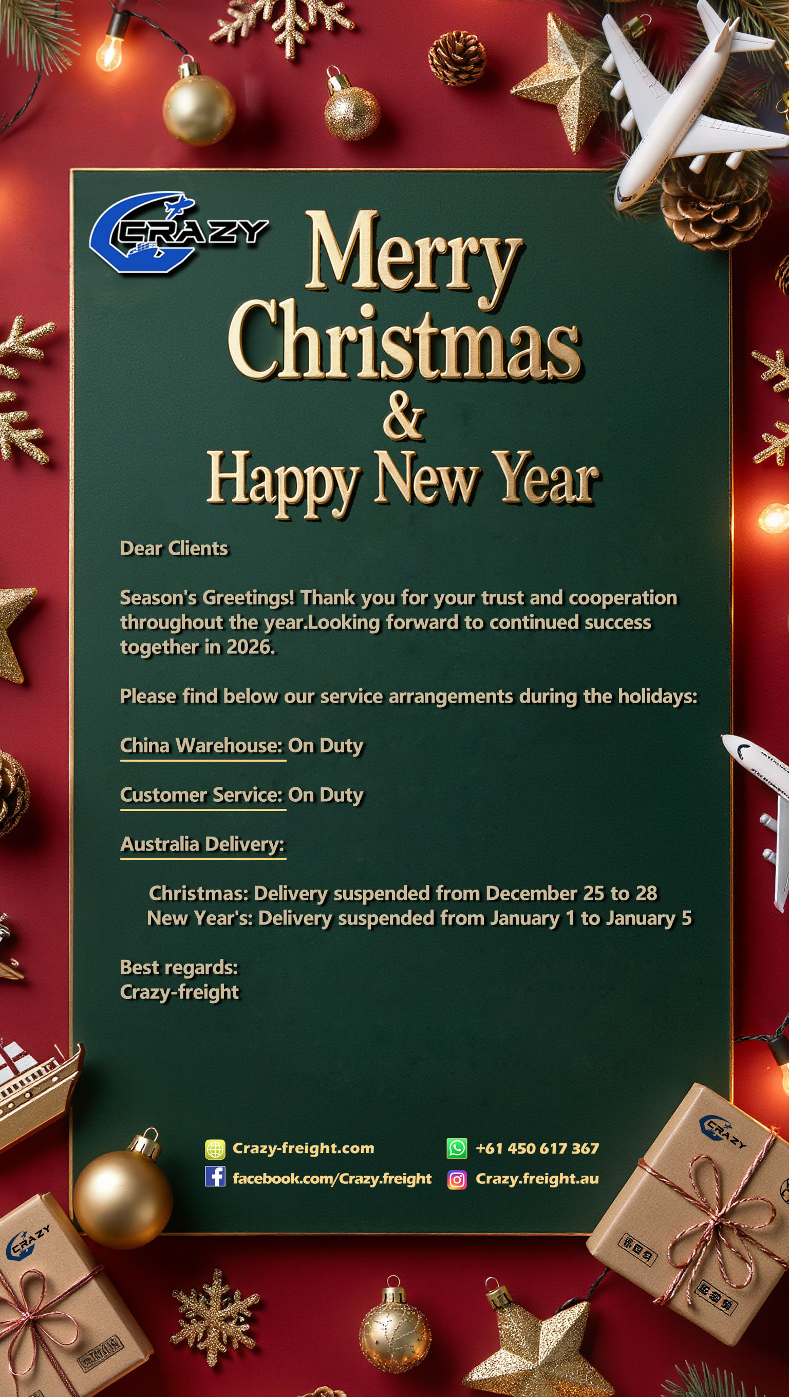 Season's Greetings! Thank you for your trust and cooperation throughout the year.Looking forward to continued success together in 2026.
