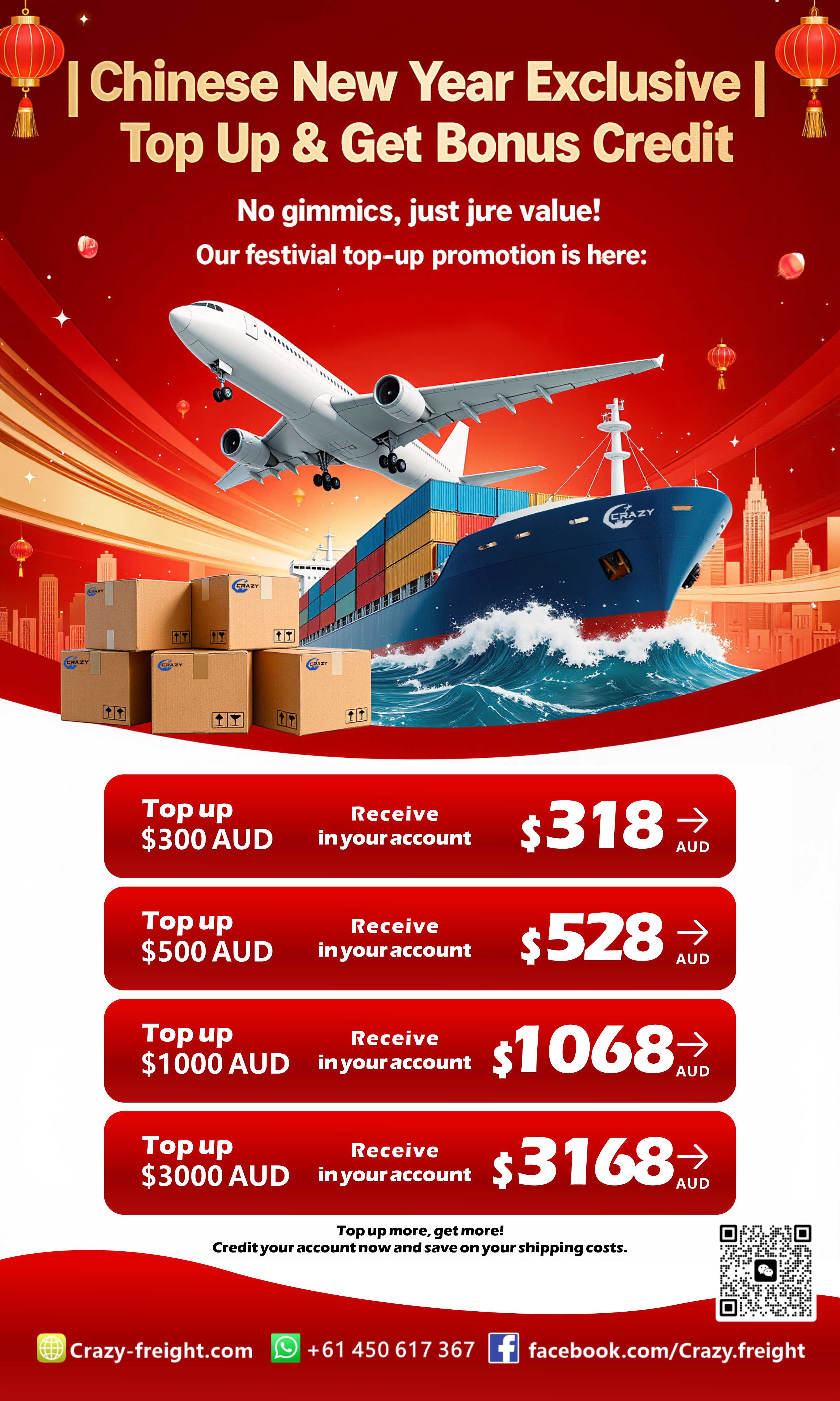 Crazy-Freight's CNY Deal: Top Up & Get Cashback!